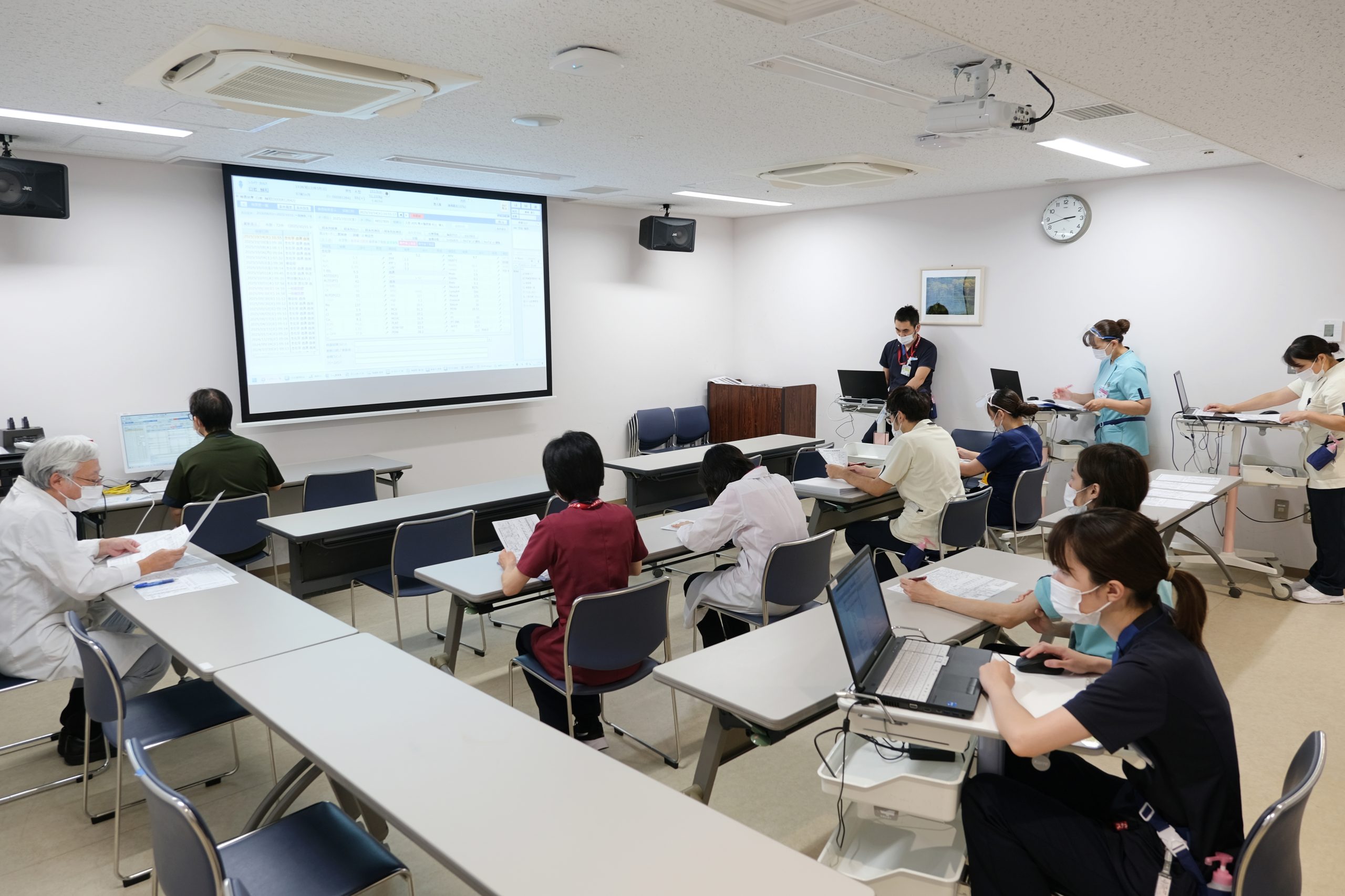 医師、看護師(病棟リンクナース、訪問看護師、摂食嚥下障害看護認定看護師)、管理栄養士、薬剤師、言語聴覚士の他職種で構成されています。そのうち、日本静脈経腸栄養学会が認定しているNST専門療法士は看護師4名、管理栄養士1名、薬剤師3名の計8名おります。